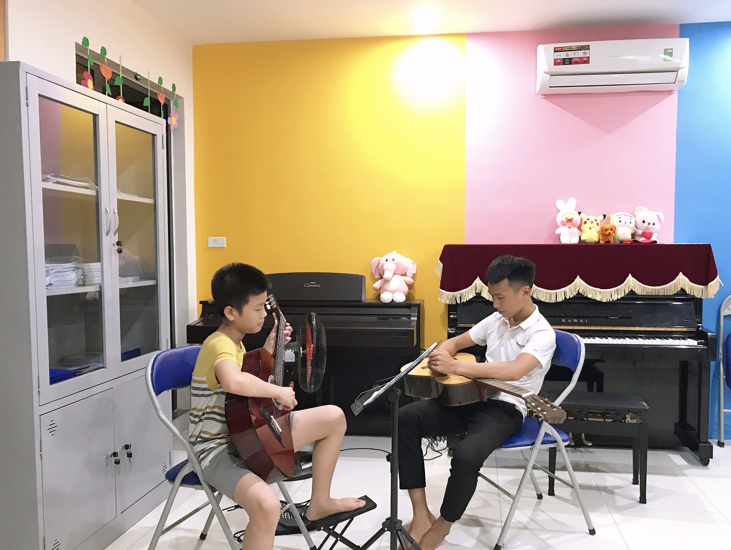Các lớp đàn Guitar liên tục được tuyển sinh, đủ đàn để các em thực hành và rèn luyện. Giáo viên có nhiều kinh nghiệm